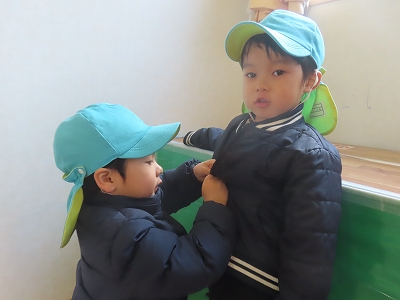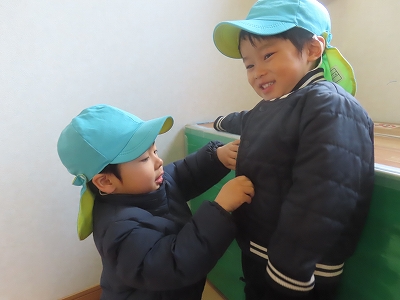お着替え、靴下・靴を履く、上着を着るなど、試行錯誤しながら取り組んでいます。