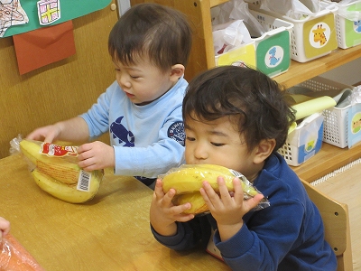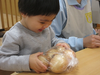 そんな保育士の思いから、食育の一環としてその日使用する野菜や果物に触れる時間を作りました😊