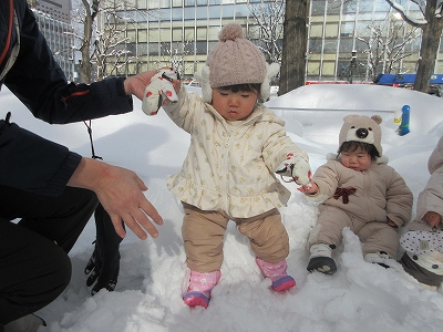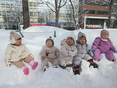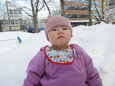 冬のある日、雪遊びに0歳児さんが出かけました。