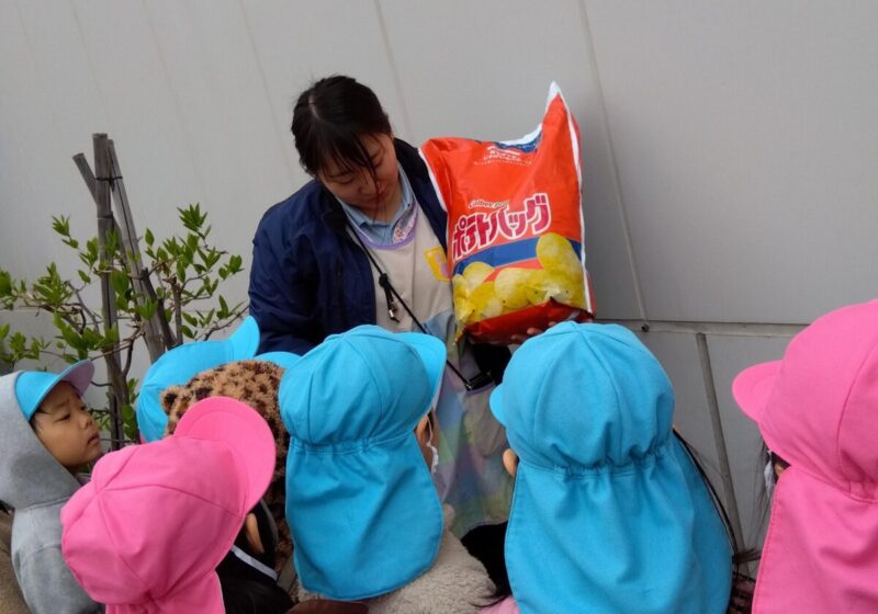 「なにがはいってるの?」「ポテトチップスのふくろ、みたことある!」