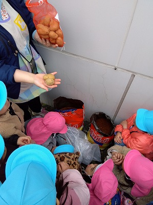 と興味津々。みんなで種いもを手に取って観察したりにおいをかいだりもしました。
