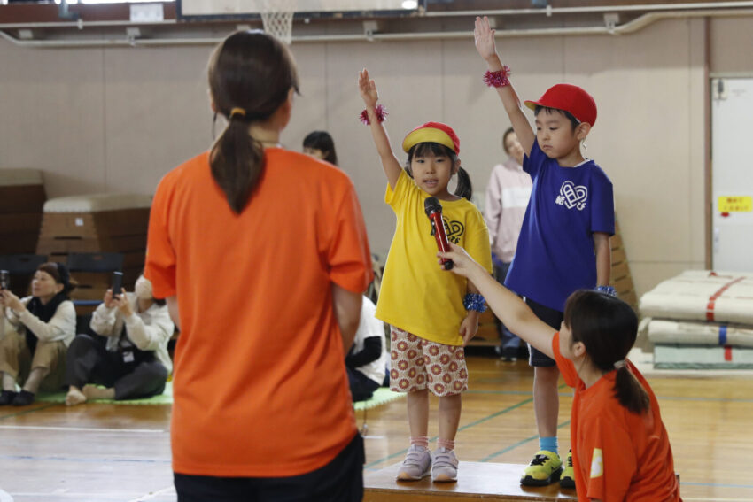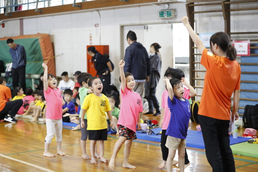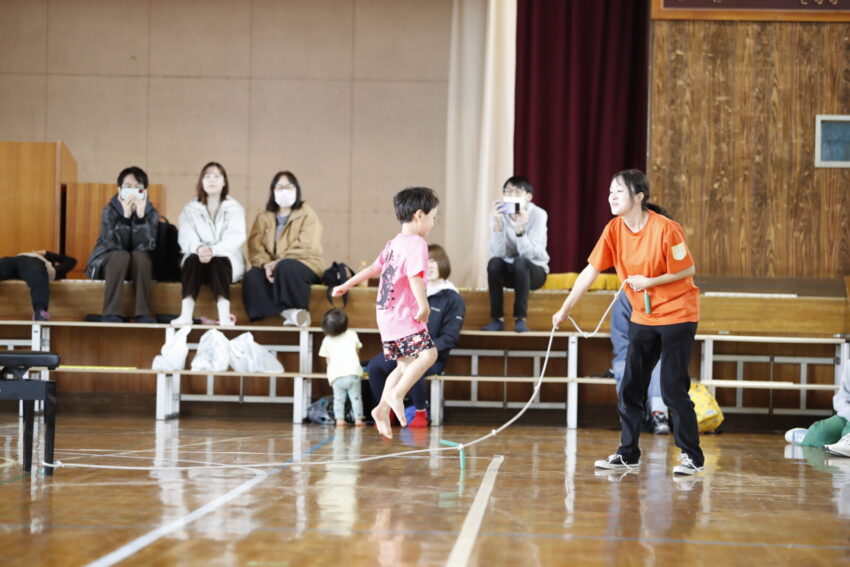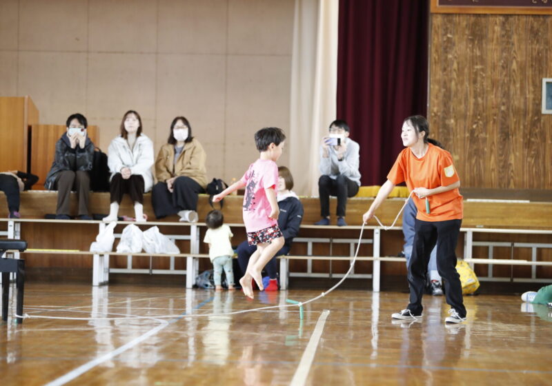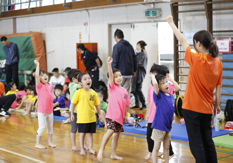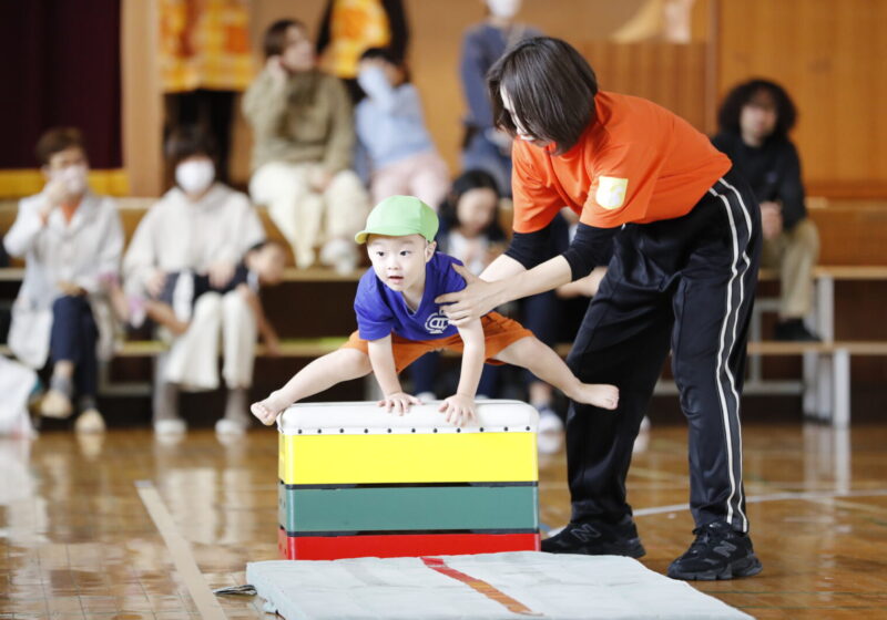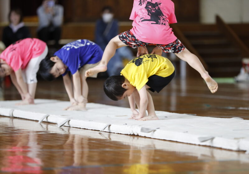 跳び箱、鉄棒、縄跳びなど、小学生レベルの技に挑戦したり、各クラスで取り組んでいるマット運動の合わせ技など、