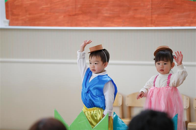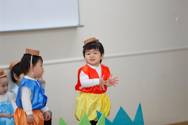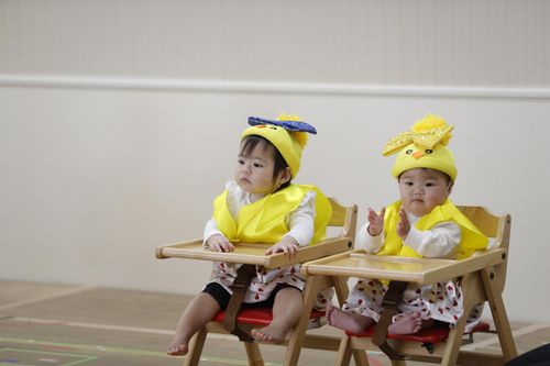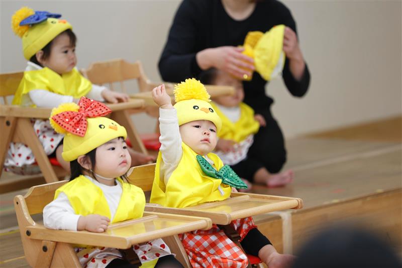 0歳児は、可愛いひよこになって普段の生活の様子を、