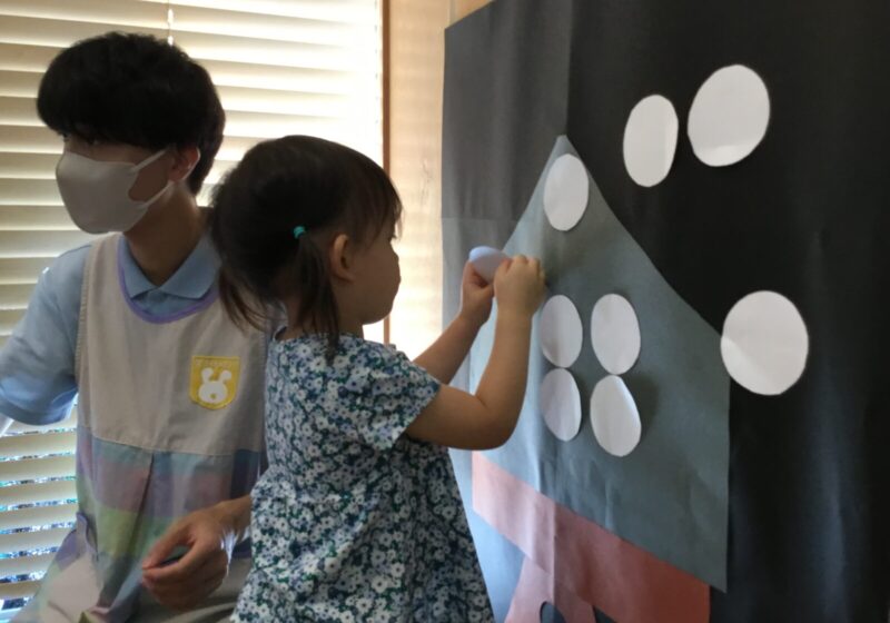 3歳児さんは、本物のお月見の団子のように綺麗に並べて貼る姿がありました!