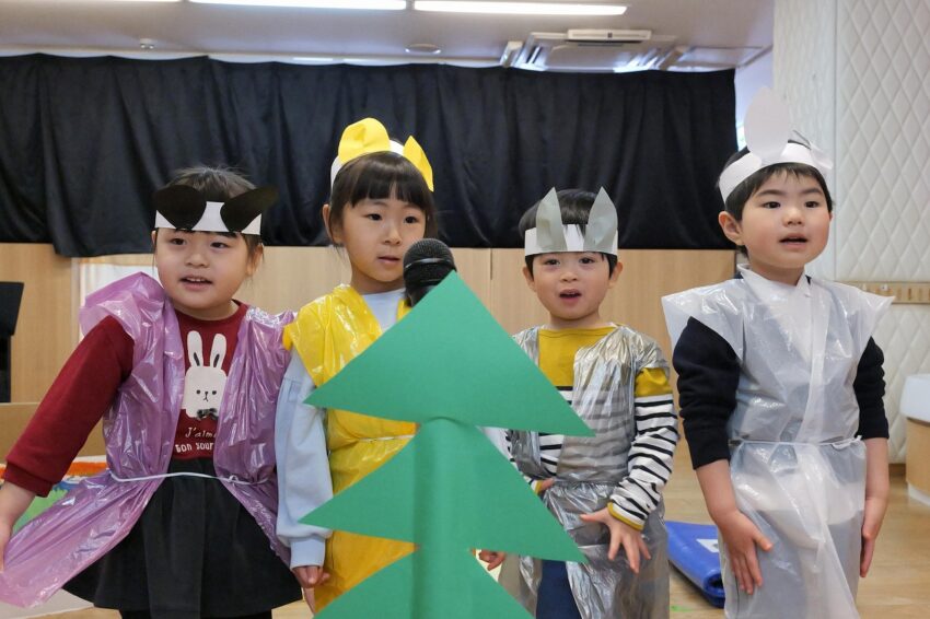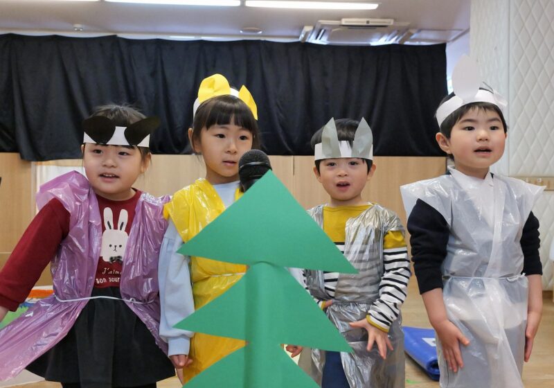 発表会が始まり、各クラスの発表が進んでいくと、緊張しながらも、元気いっぱい身体を動かしたり、踊ったり、劇をして楽しみながら発表をする様子がありました。