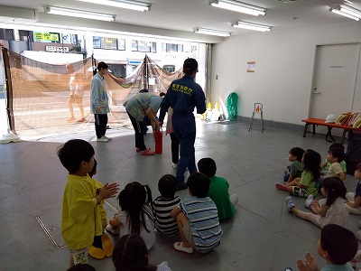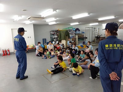訓練ではありますが、大切なお子様をお預かりしていますので全職員が声を出して消火活動に取り組みました。子どもたちも普段と違った保育者の姿をじっと見守ってくれていました。