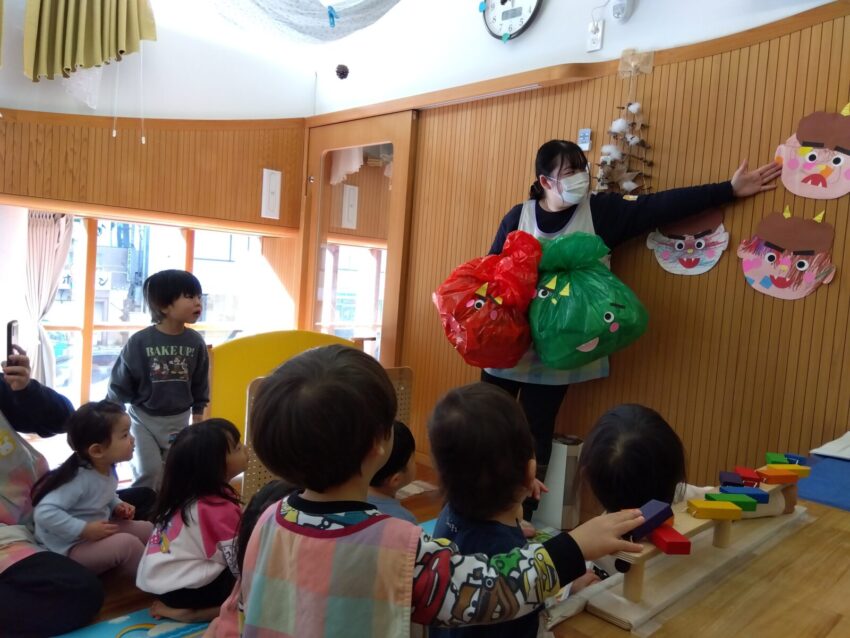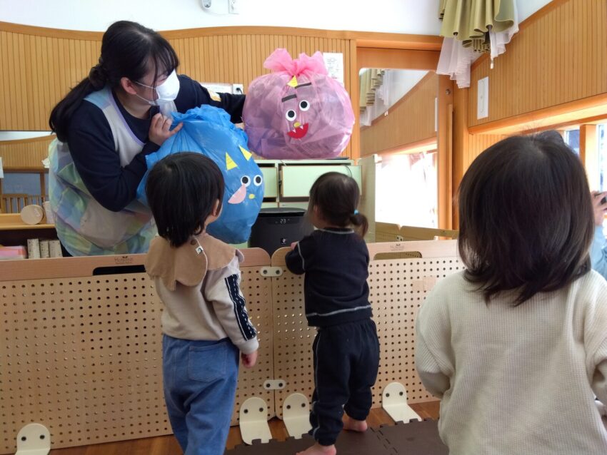 乳児クラスのお友達も幼児クラスのお友達もしっかり鬼退治することができました。