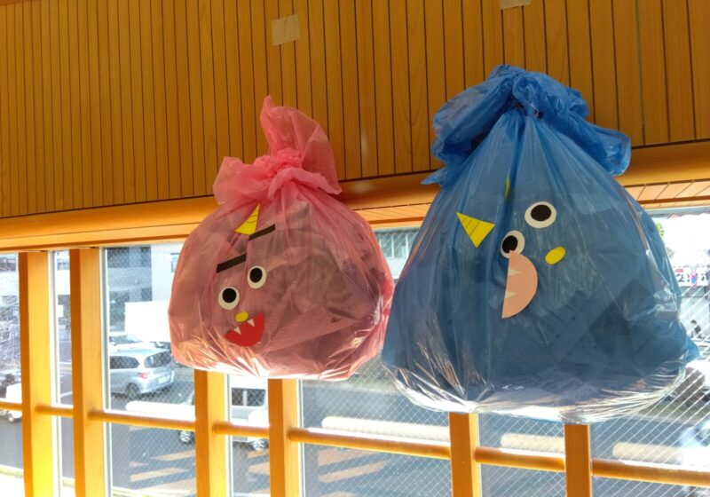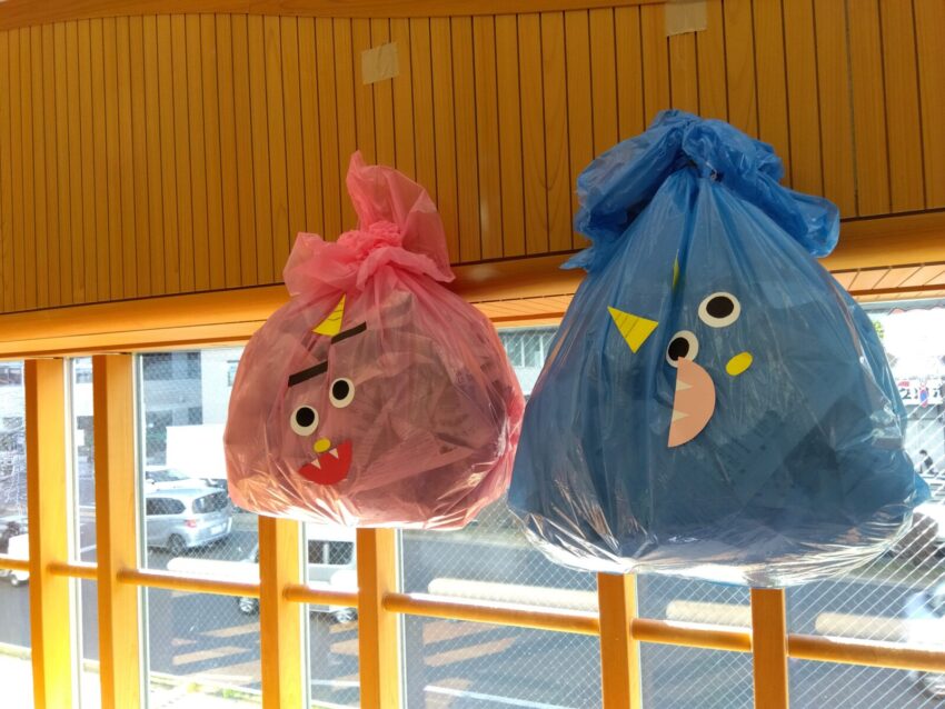 「鬼は外!福は内!」と元気いっぱいに新聞紙を丸めた豆を使って豆まきすることができました。