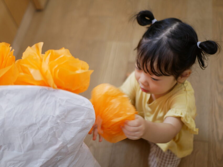 今日は製作で3施設合同のおまつりのお店に並ぶクリームソーダを作ってもらったり、神輿に花紙を装飾したり、うちわを製作したりと、おまつりに向けて様々なことに取り組んだピーターパン組さんです。