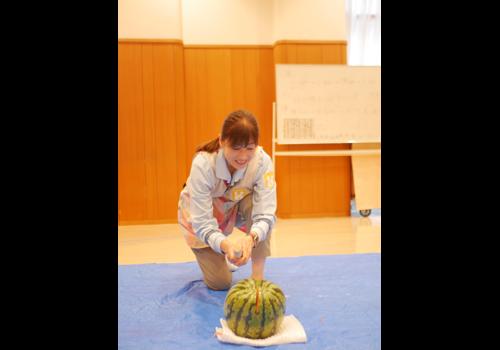 スイカが割れると、甘くて美味しそうな香りがお部屋の中に広がり、食べる時間が待ち遠しく感じられました!
