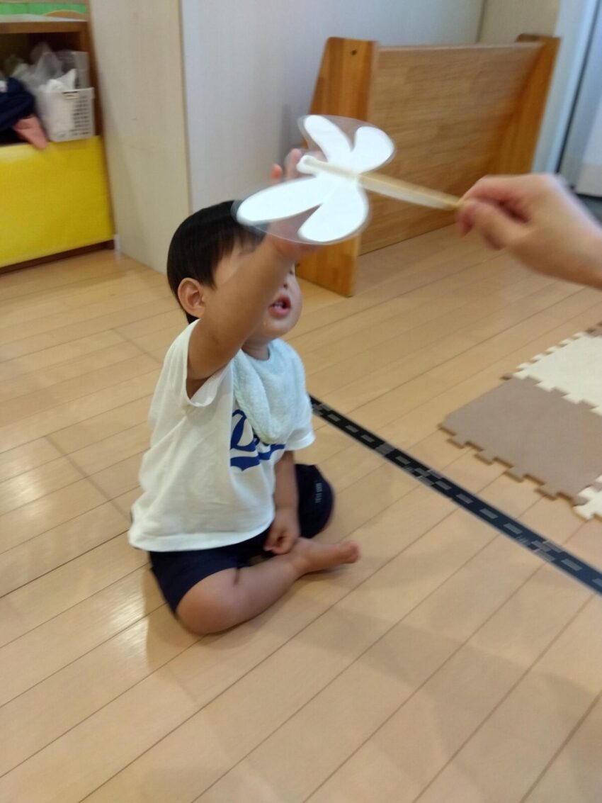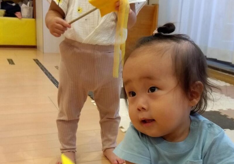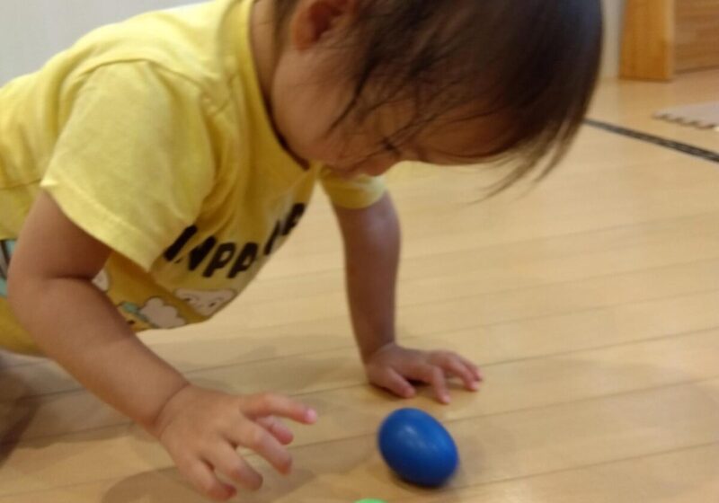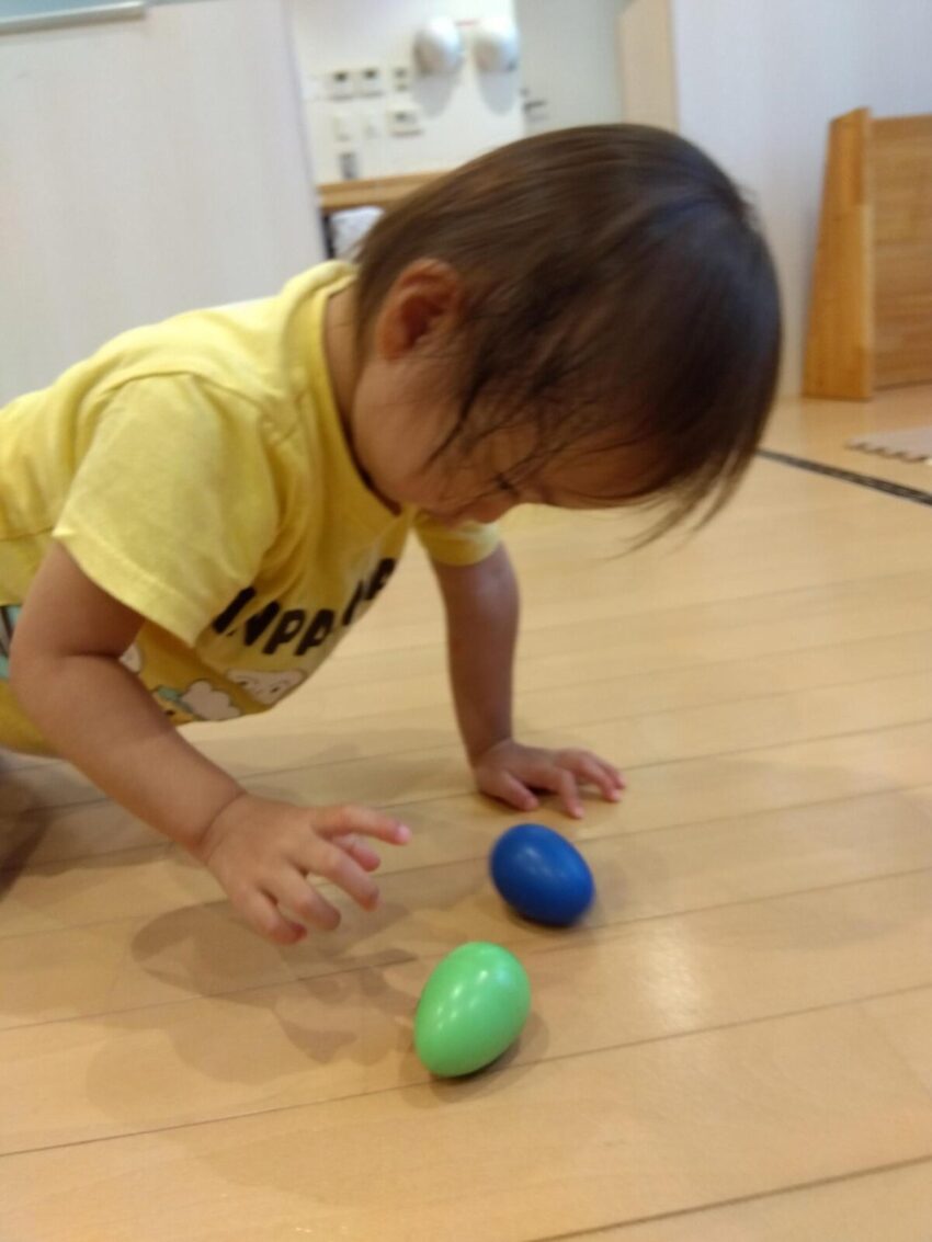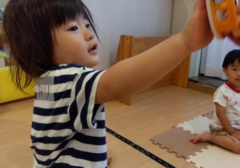 先生のピアノに合わせてカラフルなマラカスを振って音を出したり、スカーフなどカラフルな小道具が登場すると目をキラキラさせて夢中で楽しんでいました。