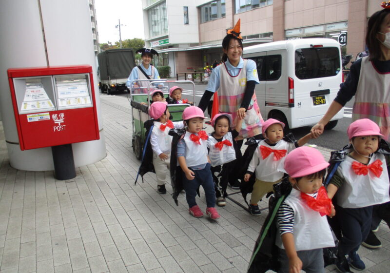 地域の方からお菓子をもらいにお散歩へ行っています。