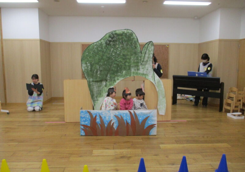 音楽発表会では、毎月2回行っているリトミックの様子や劇遊びの様子を披露しました。
