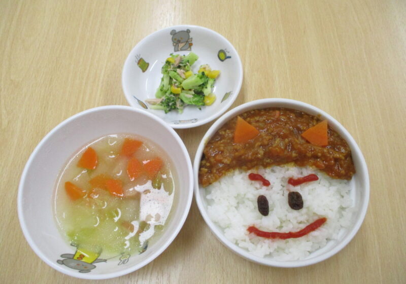 給食は節分にちなんだ鬼カレーを食べました。